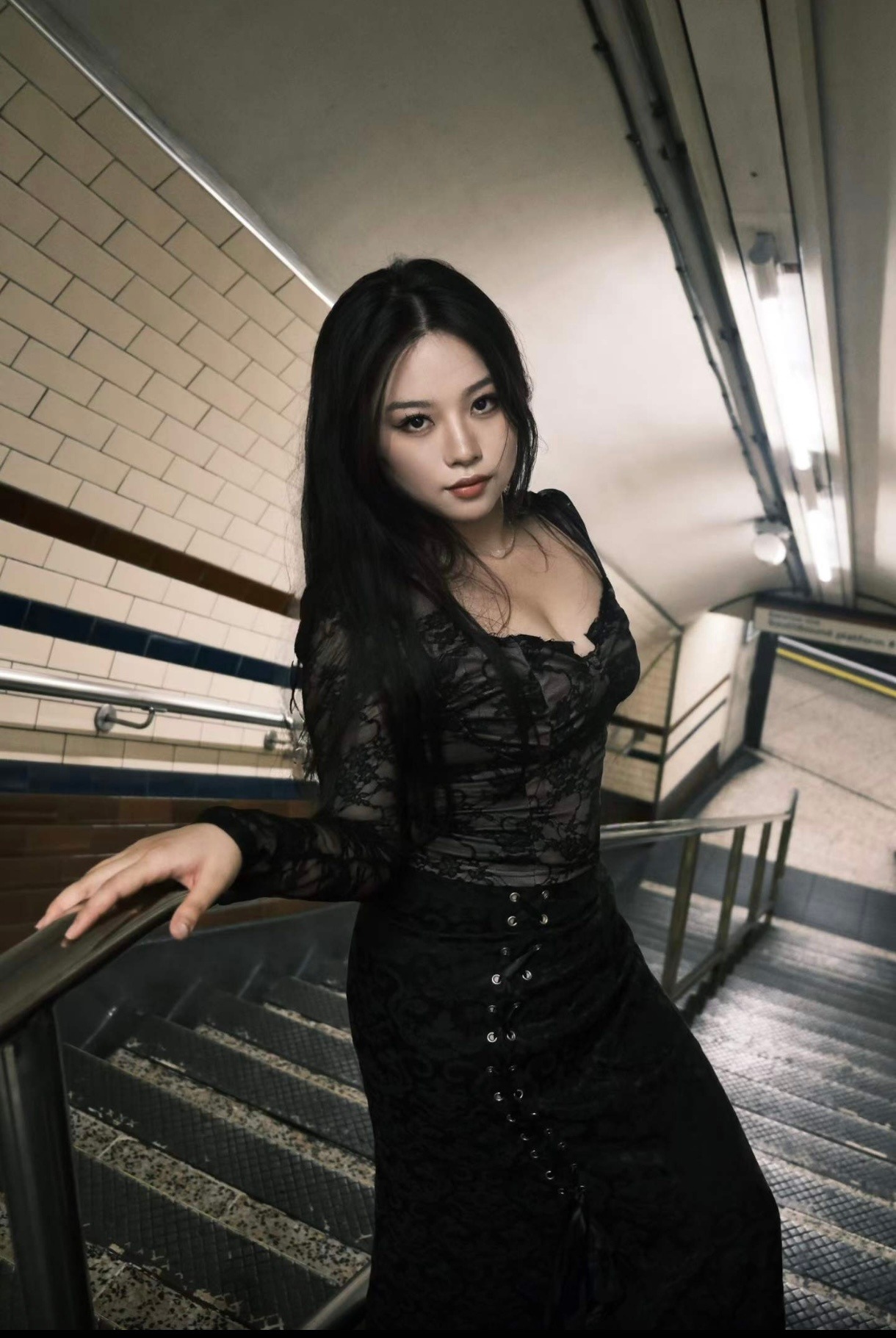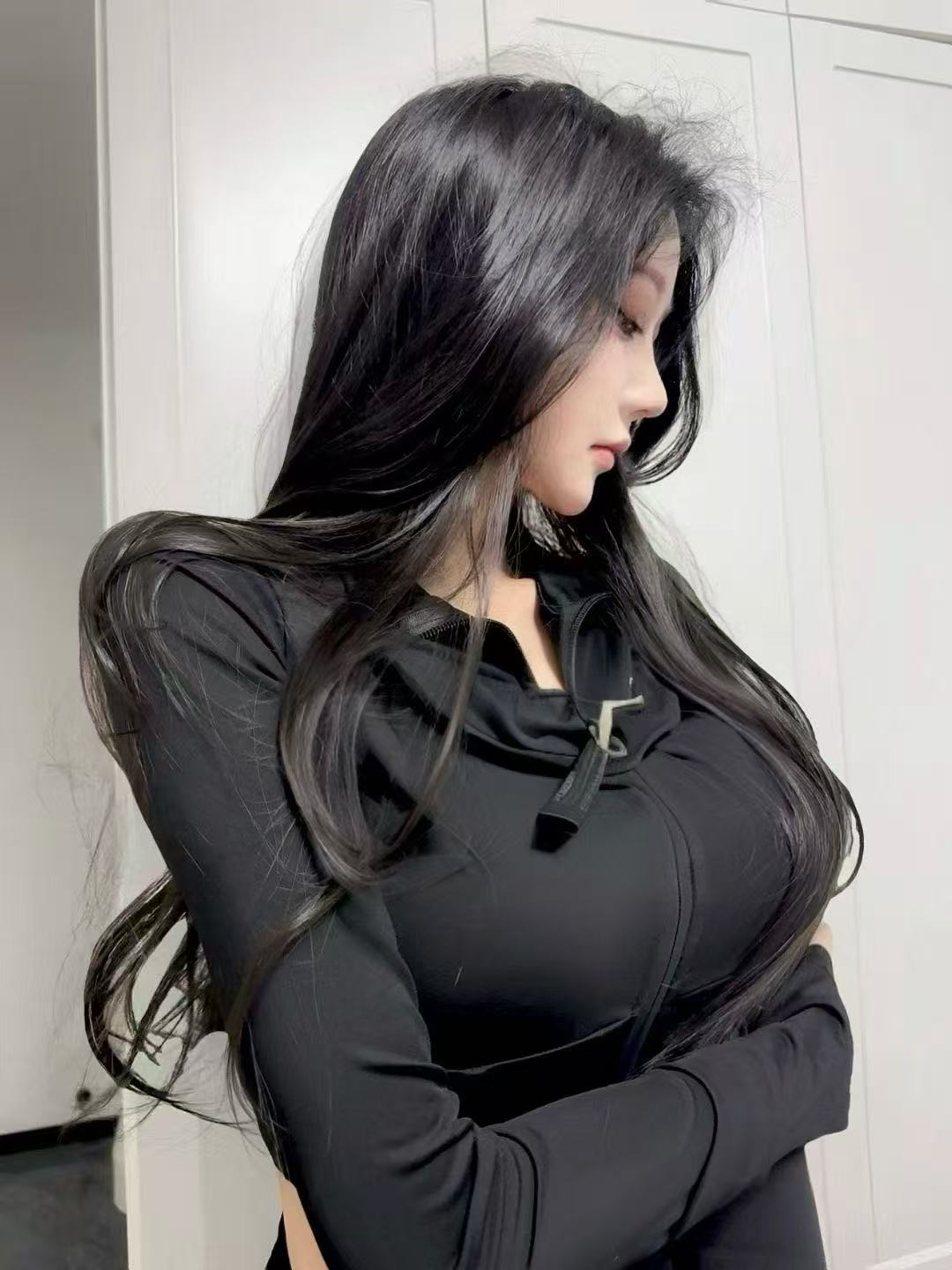 [欧美] 长长的黑发衬托着她可爱的脸庞,她脸上只有诱